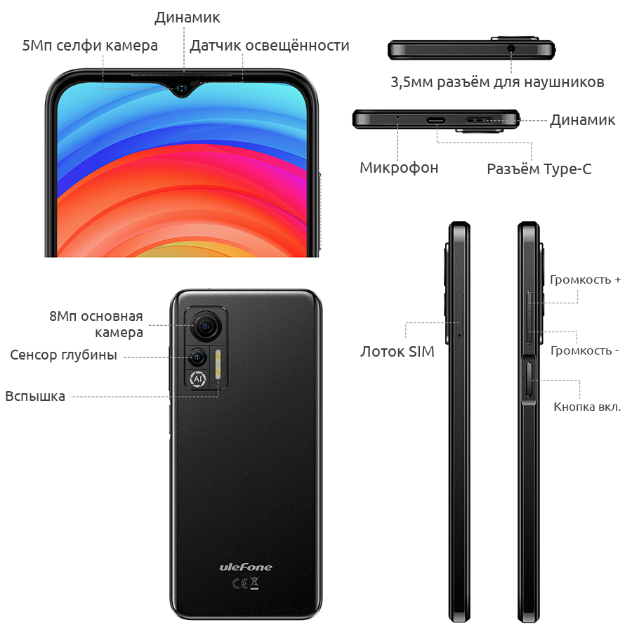 Предыдущие характеристики являются теоретическими значениями, основанными на конструкции продукта. Некоторые функции и технические характеристики могут различаться в зависимости от рынка. Для предоставления точной информации о продукте, технических характеристик и функций Ulefone может в режиме реального времени вносить коррективы в предыдущие спецификации, чтобы они соответствовали производительности продукта, спецификациям, индексам и компонентам фактического продукта. Информация о продукте может быть изменена и дополнена без предварительного уведомления.