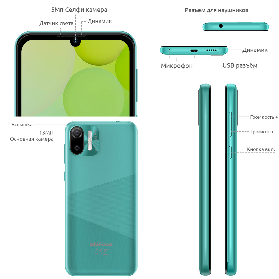 Приведенные выше характеристики являются теоретическими значениями, основанными на конструкции продукта. Некоторые функции и технические характеристики могут различаться в зависимости от рынка. Для предоставления точной информации о продукте, технических характеристик и функций Ulefone может в режиме реального времени вносить коррективы в предыдущие спецификации, чтобы они соответствовали производительности продукта, спецификациям, индексам и компонентам фактического продукта. Информация о продукте может быть изменена и дополнена без предварительного уведомления.